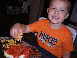 Yesterday, Monday, we stayed home all day. We have only one car now, cuz Ken's is broken. So we were stranded, but we made halloween m+m cookies and personal pizzas for dinner(not cookies for dinner). We took some cute pics. I sure wish I could get them on here.